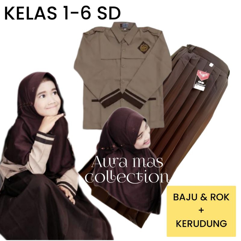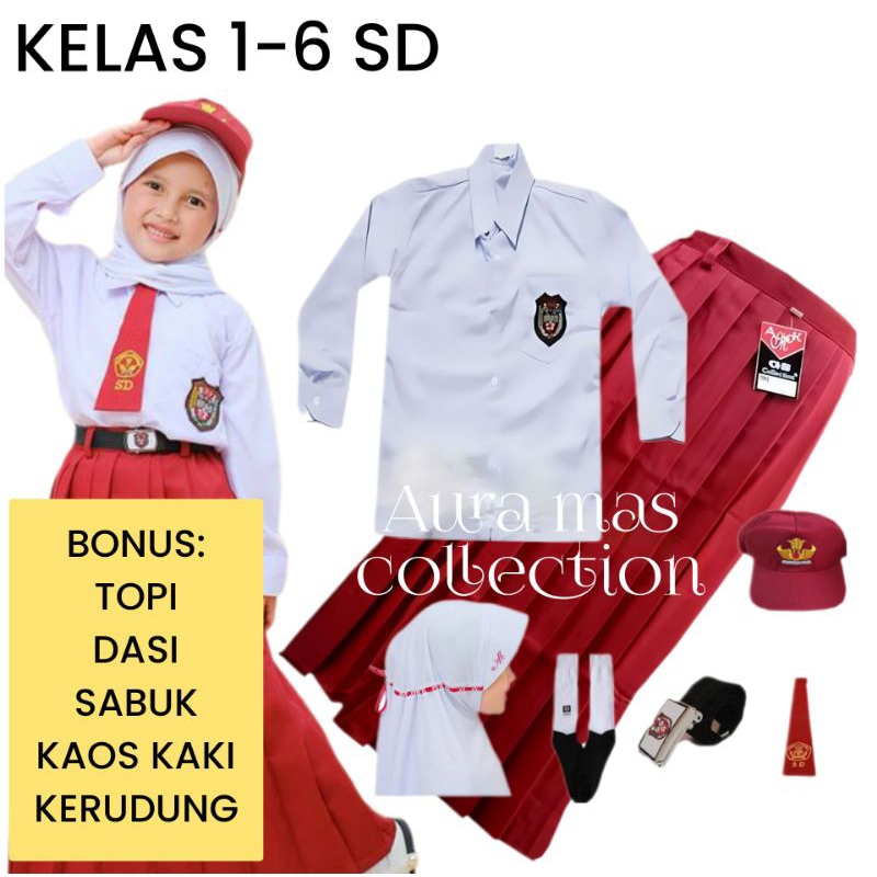 SETELAN SERAGAM SEKOLAH SD PRAMUKA MERAH PUTIH SIAGA PEREMPUAN KELAS 1 - 6 PAKET PREMIUM