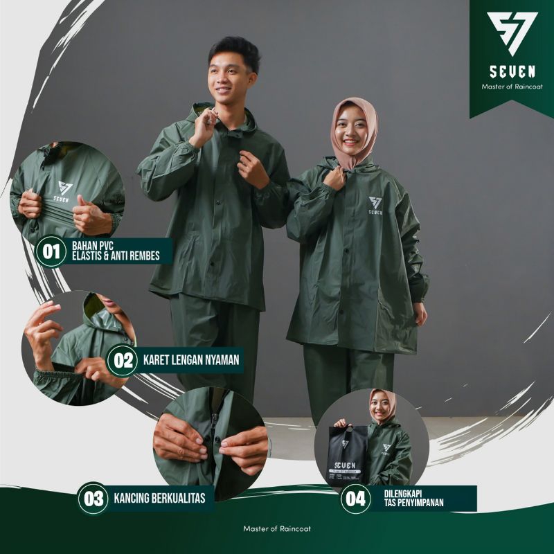 Seven pro Jas hujan, raincoat pria dan wanita terbaik tebal kuat elastis anti rembes by seven pro