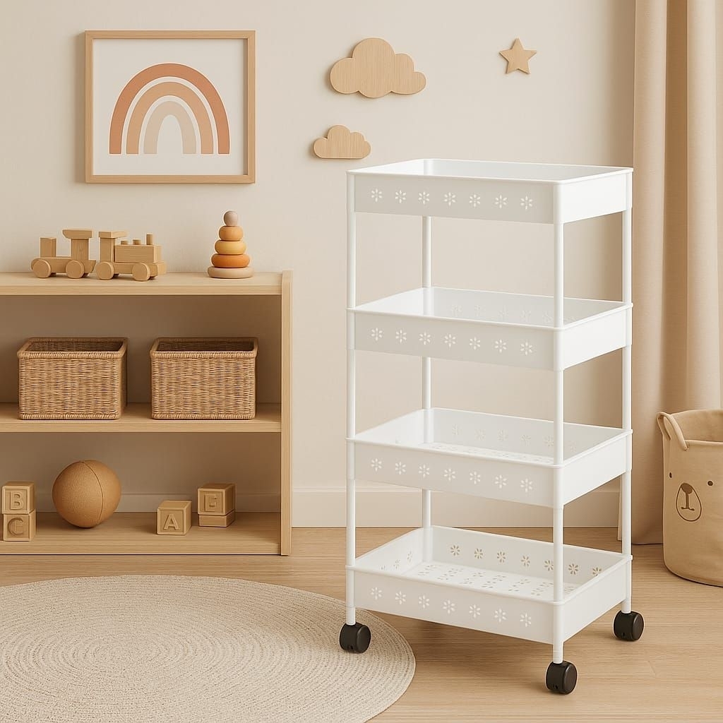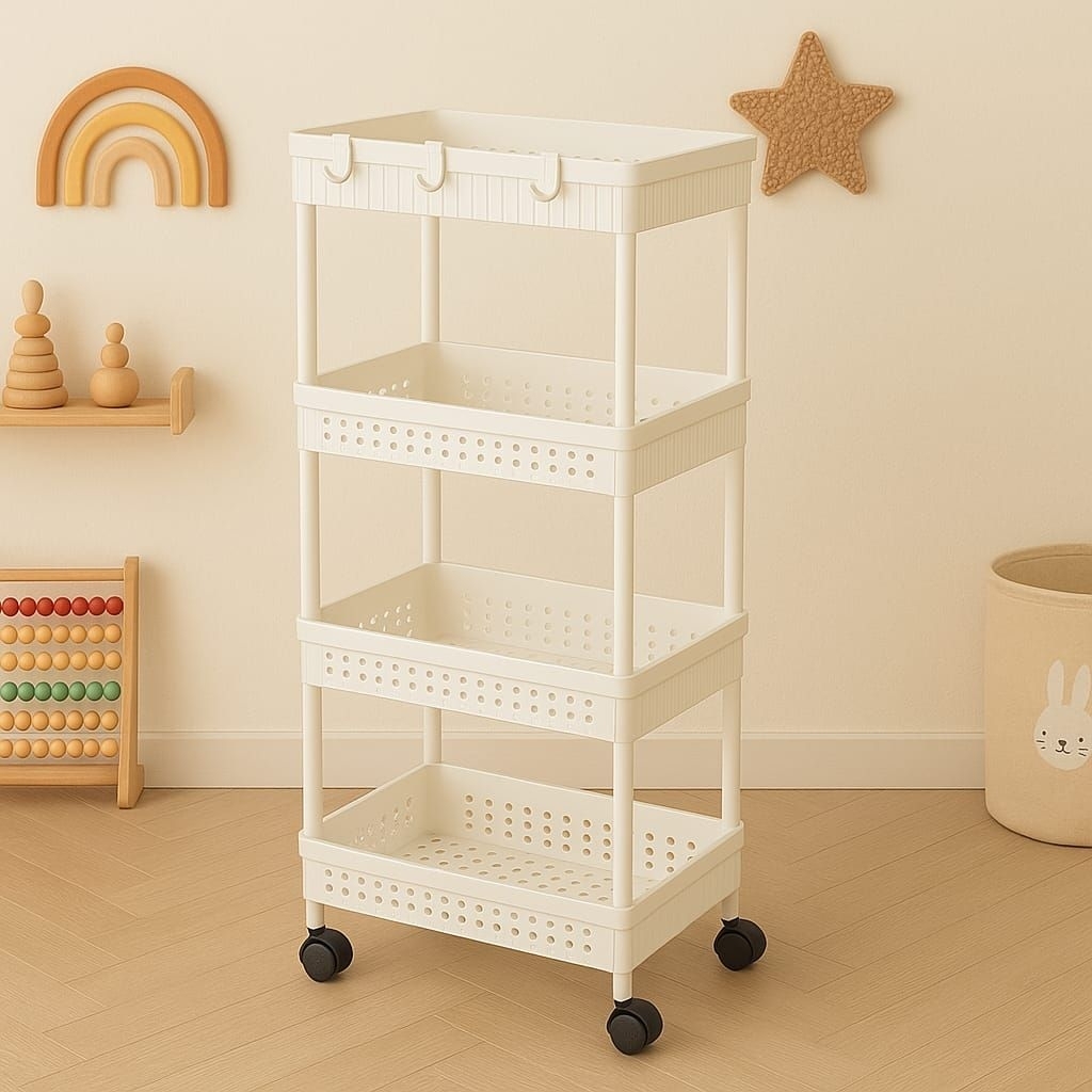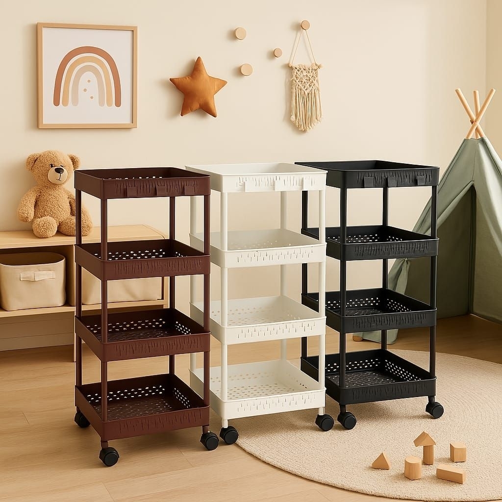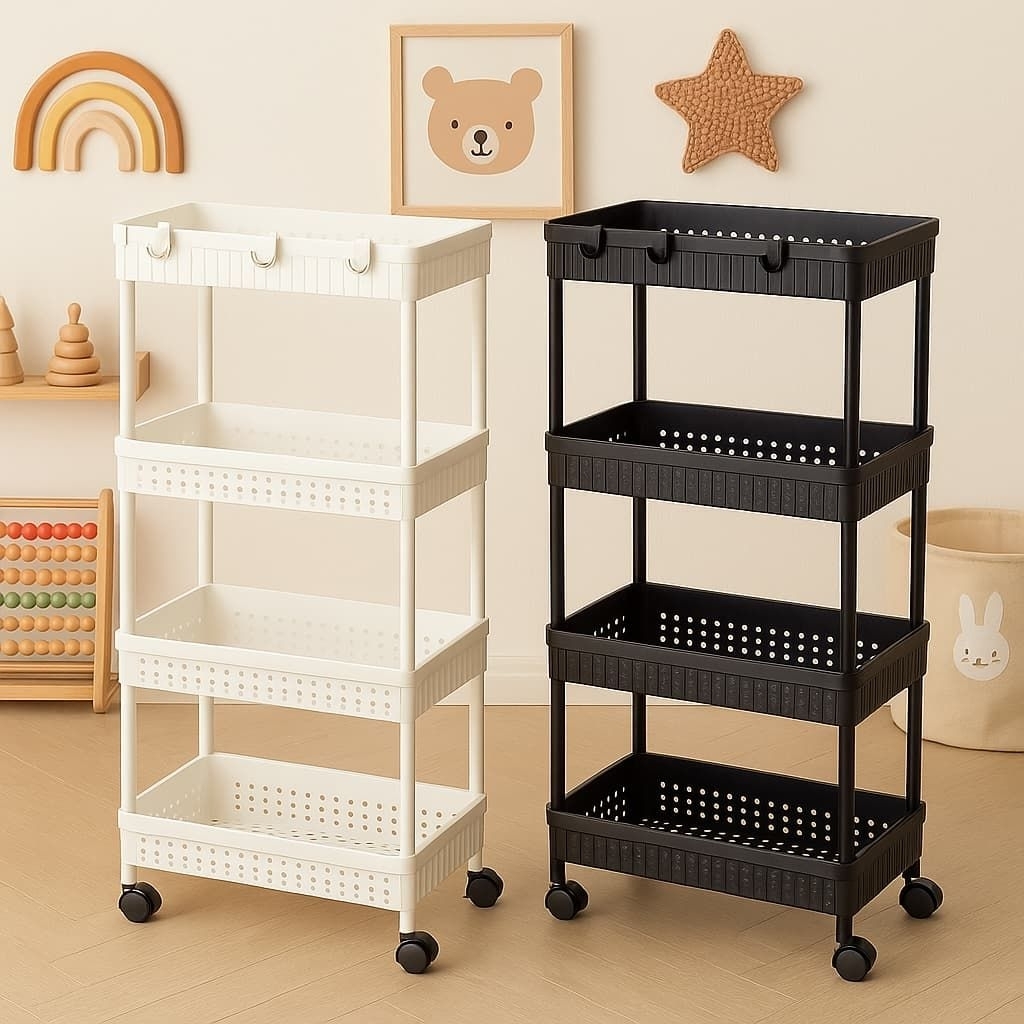 Rak Troli Susun 4 Dengan Roda Rak Penyimpanan Serbaguna Rak Yeye