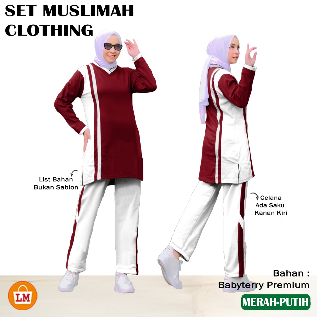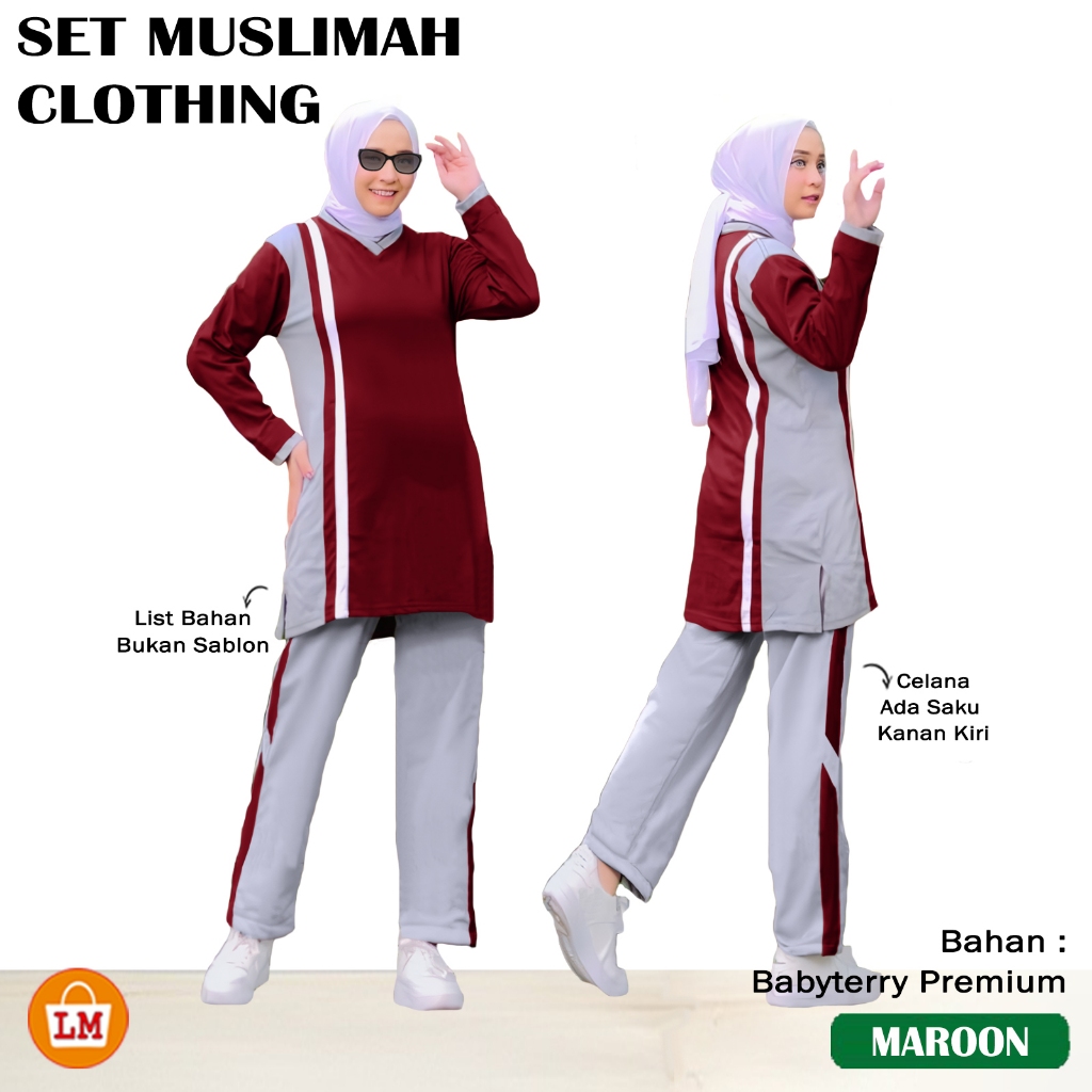 MA SET MUSLIMAH CLOTHING - Setelan Training Olahraga Wanita Muslimah Lengan Panjang Bahan Babyterry Size L XL XXL X