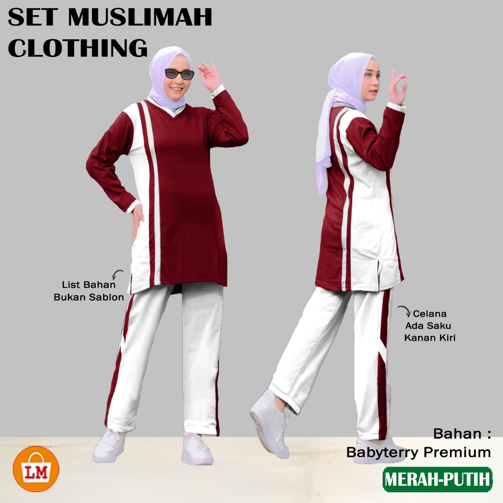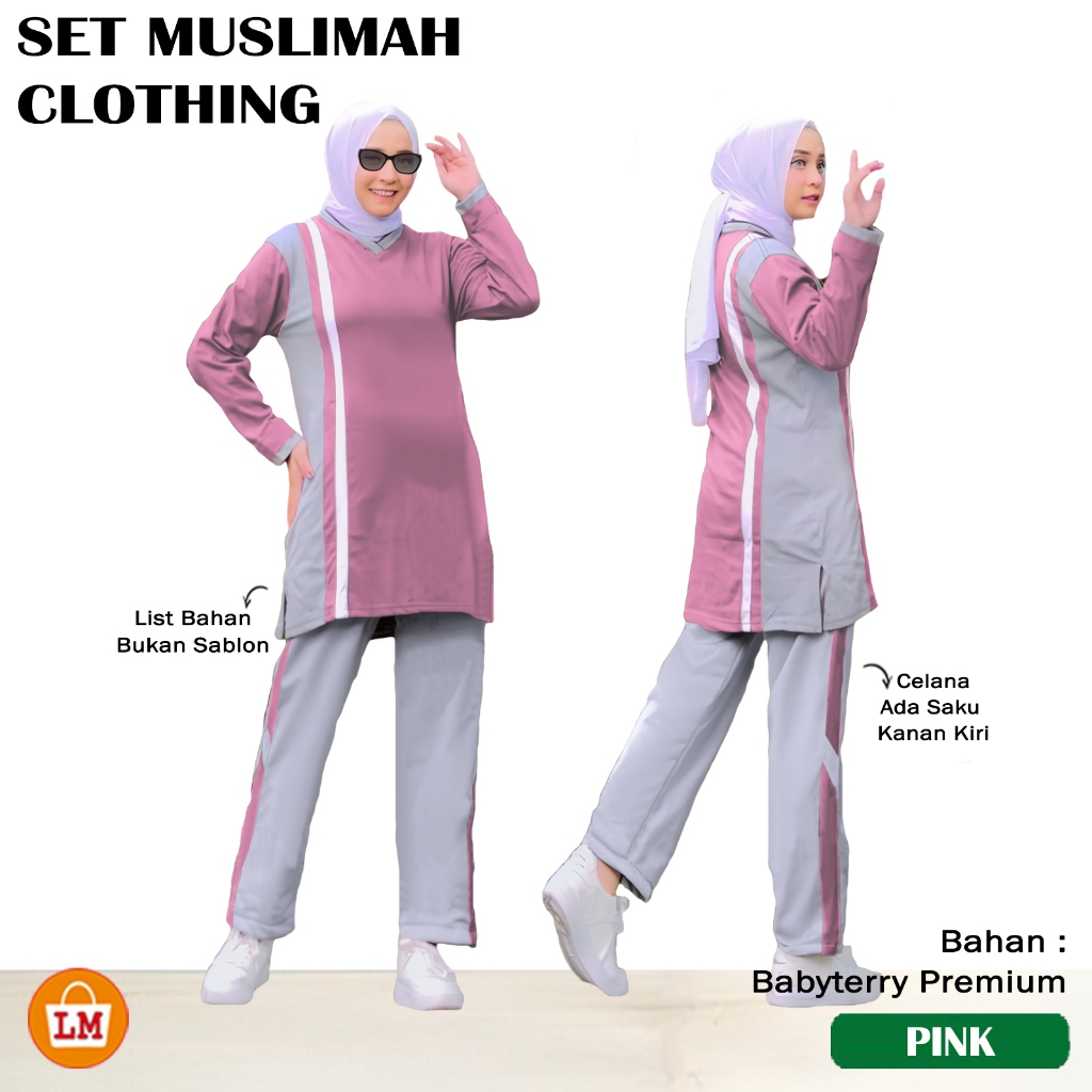 SET MUSLIMAH CLOTHING Setelan Training Olahraga Wanita Muslimah Lengan Panjang Bahan Babyterry Size L XL XXL XXXL A