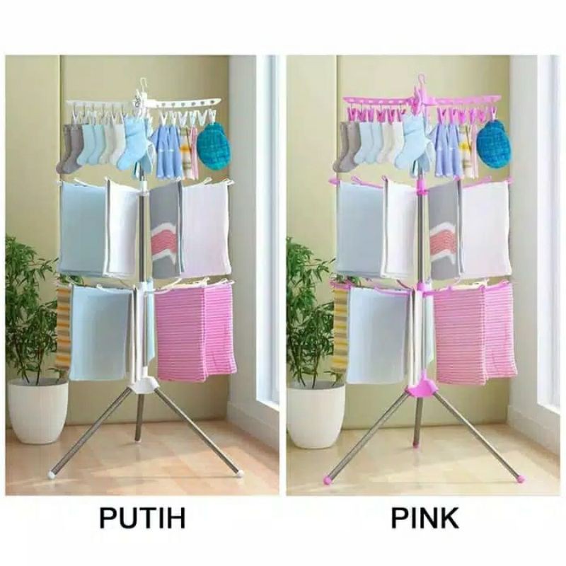 JEMURAN MENARA BAJU BAYI 3 SUSUN TRIPOD DENGAN HANGER ROTASI