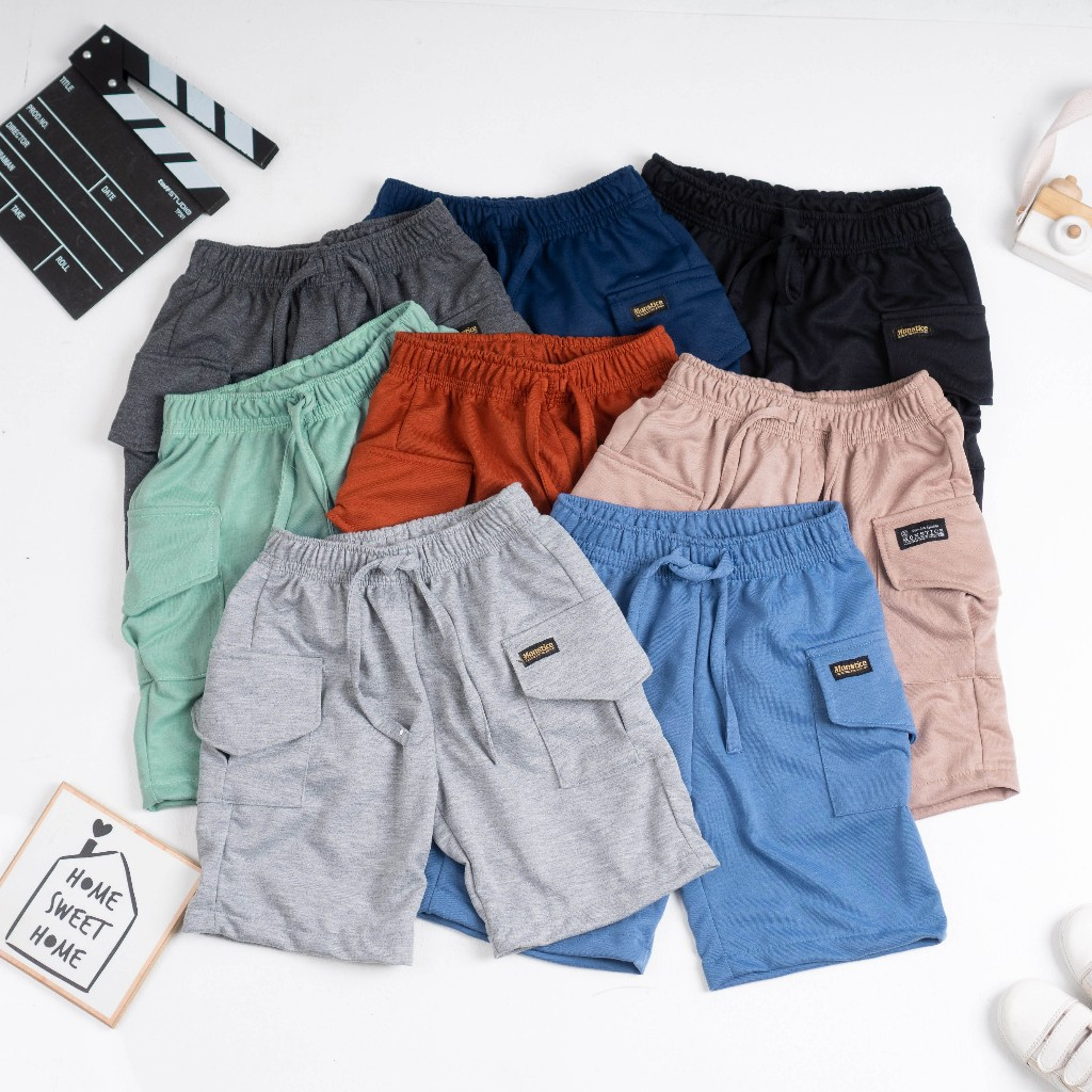 4 pcs Celana Cargo Pendek Anak Laki-Laki 1-12 tahun Celana Pendek Cargo Babyterry Tebal 230gr