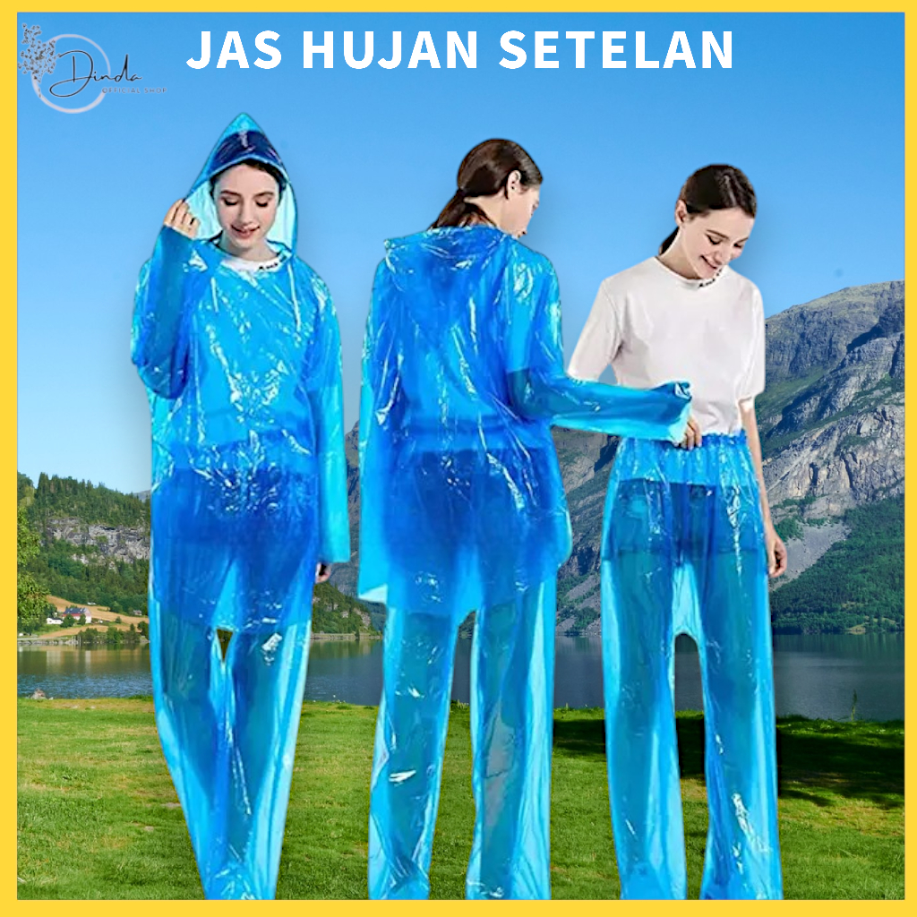 Jas Hujan Plastik LDPE Setelan Baju Celana Lengan Panjang Raincoat