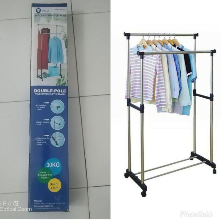 [JR-05] JEMURAN BAJU DOUBLE POOL RAK BESI STAINLEES / JEMURAN PAKAIAN / STAND HANGER BESI STAINLEESS