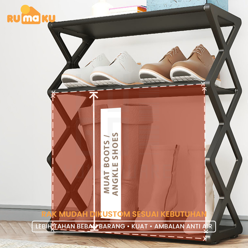 Rak Sepatu Portable 4 Susun Minimalis Stainless Steel Tempat Sepatu dan Sandal Serbaguna