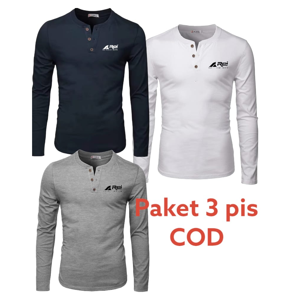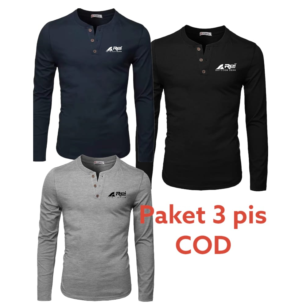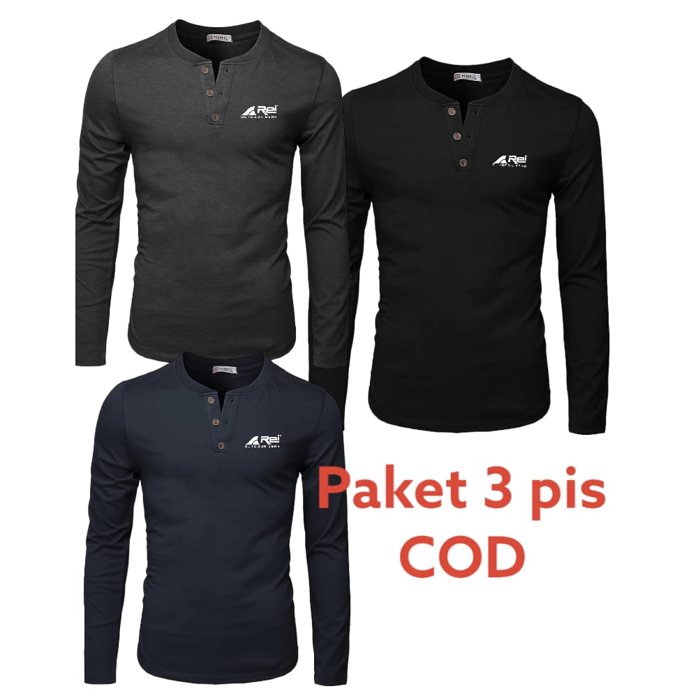 Pakaian Pria Kaos Kancing 3PCS – Lengan Panjang Polos / Baju Cowok Harian