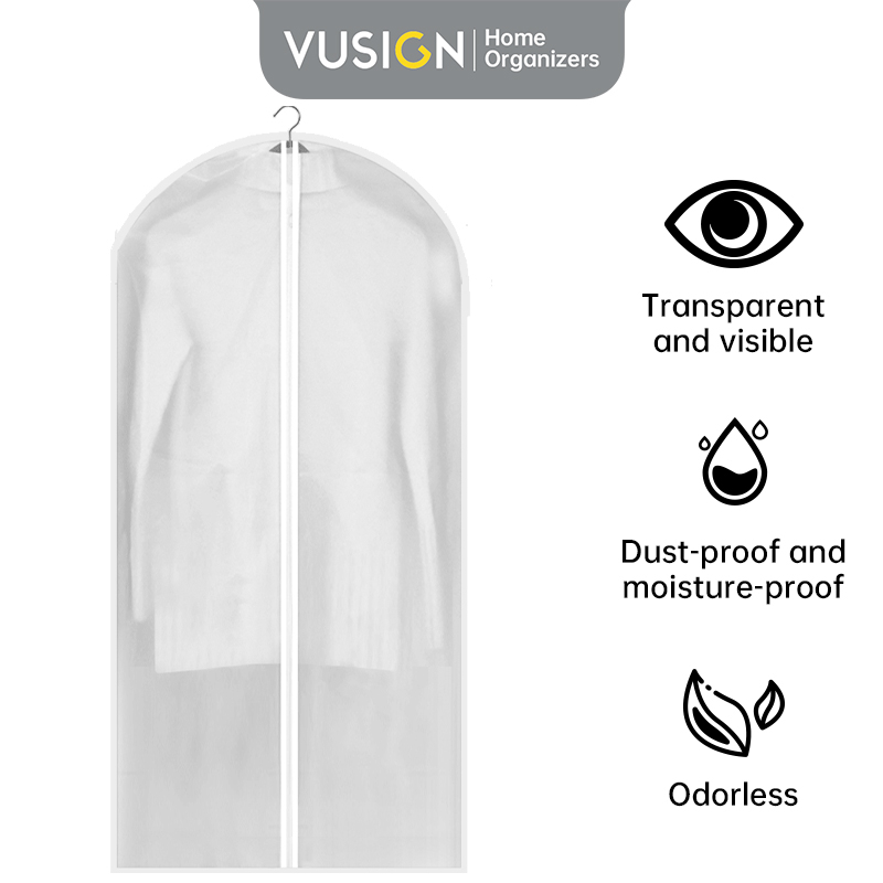 Vusign Clothes Cover / Cover Baju Resleting Anti Debu Penutup Gantungan Baju Sarung Pelindung Pakaian Jas Gaun Gantung Transparan VS63X