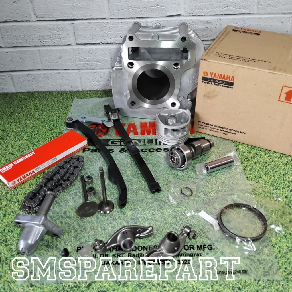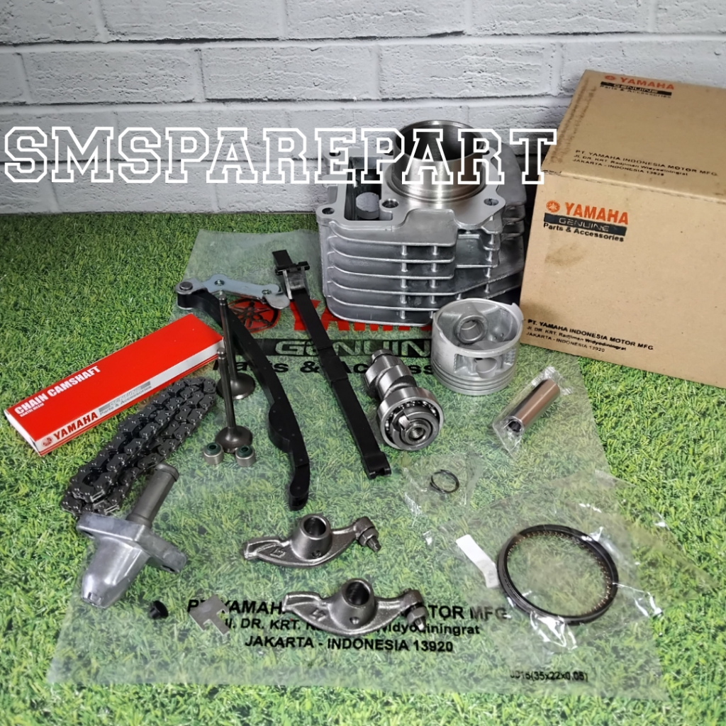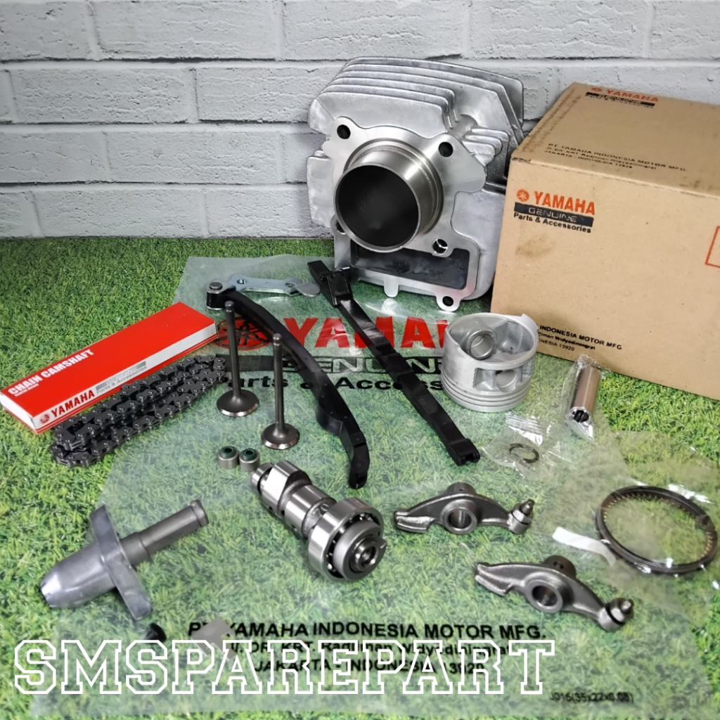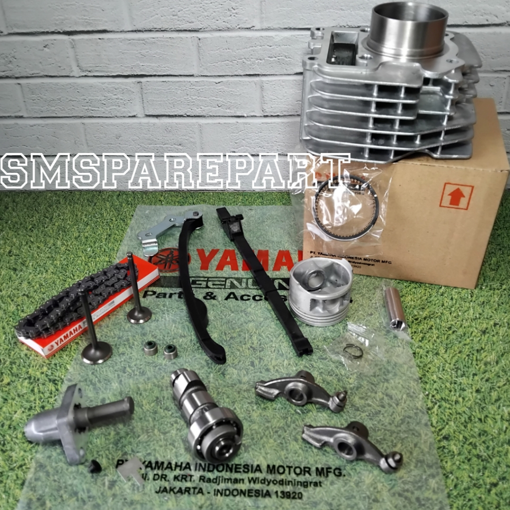 Paketan blok block seher komplit yamaha vega r new jupiter z burhan 2004 - 2009 ( cylinder assy noken as payung pelatuk klep rantai keteng karet tensioner tonjokan dan seal klep )