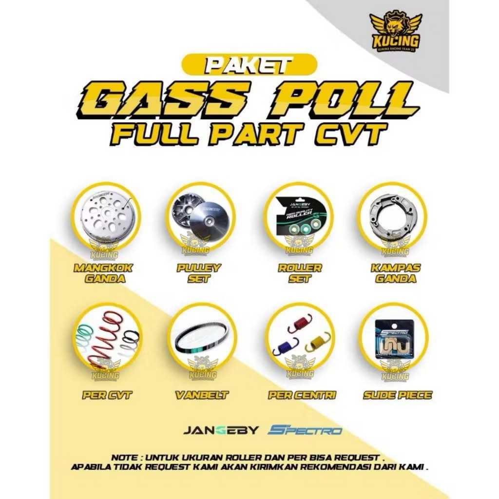PAKET GASS POLL FULL PART CVT JANGEBY - SPECTRO HONDA YAMAHA VARIO 125-150 PCX ADV 150-160 BEAT FI SCOOPY FI BEAT DELUXE NMAX AEROX LEXI FULL PART CVT RACING UPGRADE CVT SPECTRO PROPER JANGEBY