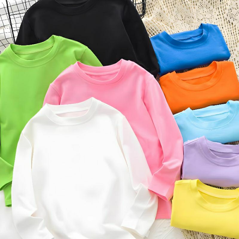 Kaos Polos Anak Lengan Panjang Usia 2-10th Kaos Oblong Anak Cotton Combed