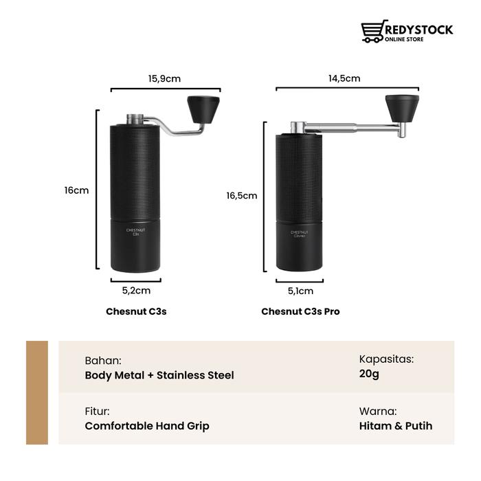 Timemore Chesnut C3S Series Coffee Grinder Penggiling Biji Kopi Manual - C3S, Putih