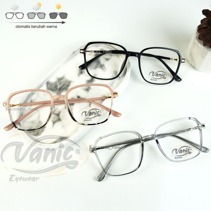 Kacamata Photocromic Kotak Wanita Vnc20098 - Hitam Dof, Antiradiasi Normal