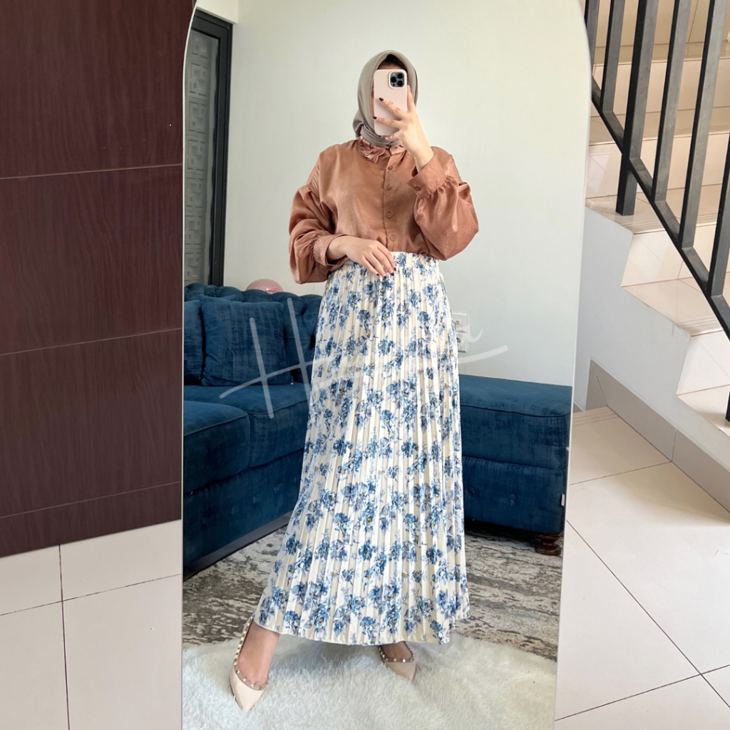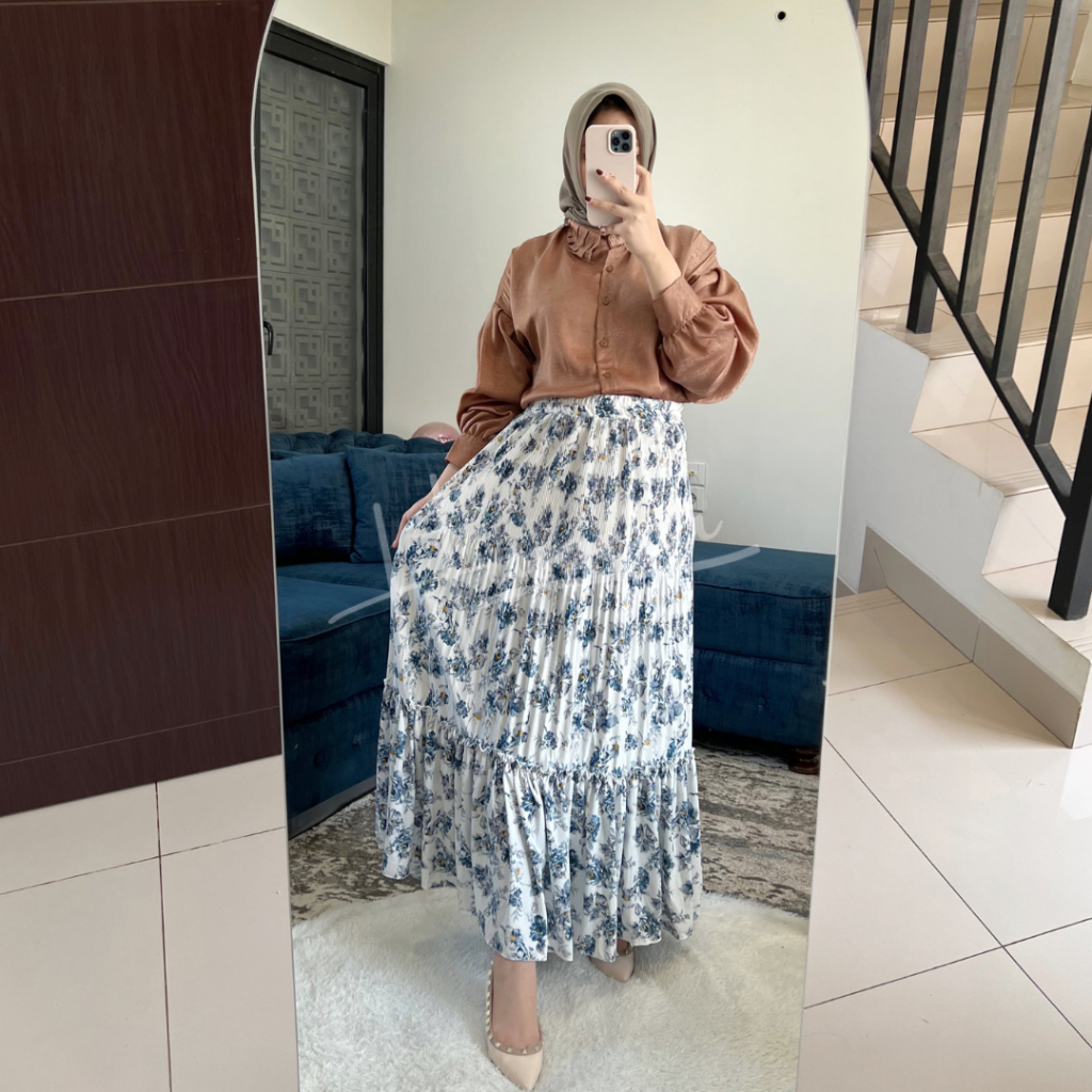 Haseena Rok Plisket Mietaa Rempel Susun Motif Bunga Peony Skirt Ruffle All Size
