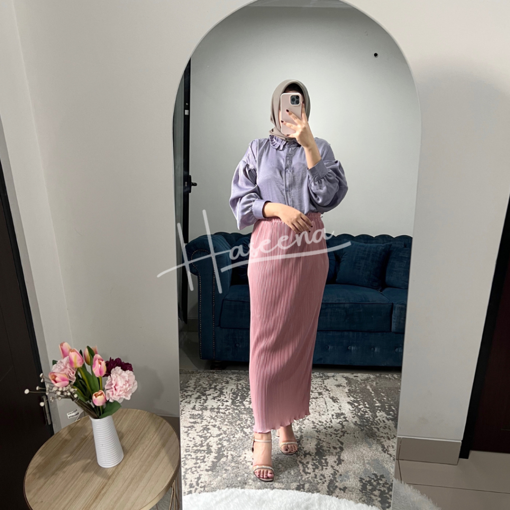 Haseena Rok Span Plisket Wavy Lidi Zalfa Pleated Skirt Dewasa All Size up to Jumbo