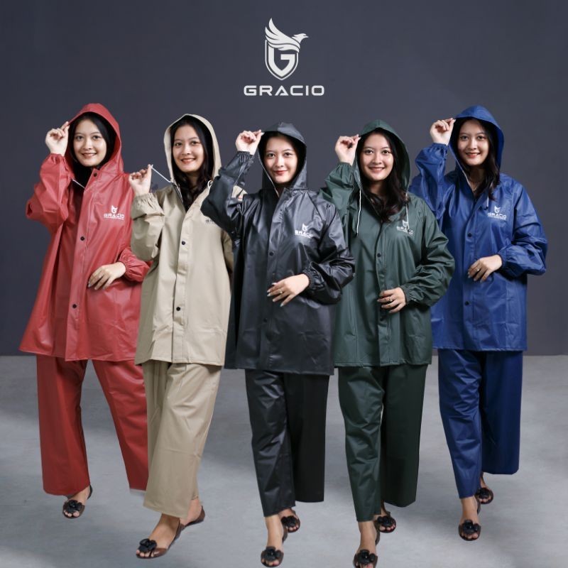 GRACIO JAS HUJAN Setelan Pria Wanita Terbaik Dewasa Mantel Karet Kuat Tebal Anti Rembes Tidak Bocor Raincoat Original Premium Bahan PVC