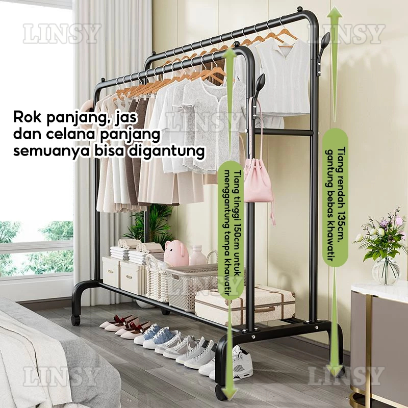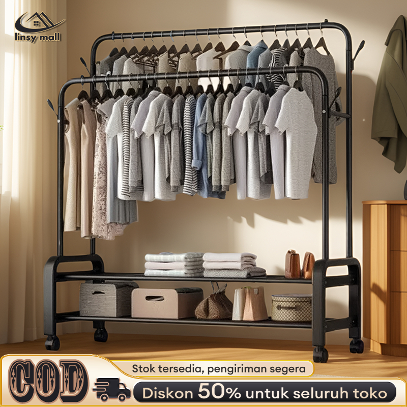 Stand Hanger Double Rak Gantungan Baju Berdiri Besi Kuat Rak Baju Gantung Minimalis 150cm