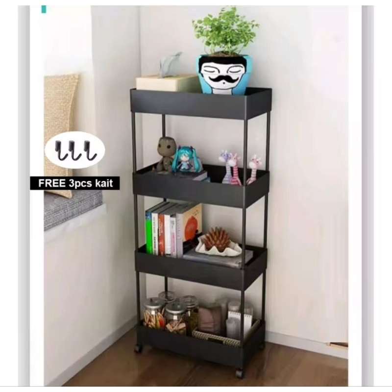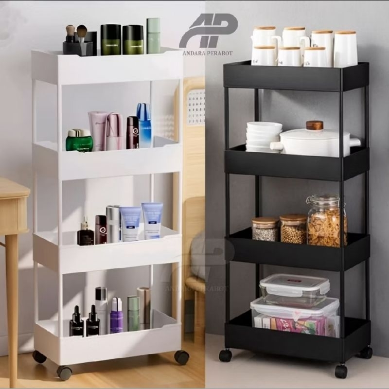 Rak Troli susun 4 + Roda Rak penyimpanan serbaguna dengan roda Rak apartemen Rak salon Rak Kamar Mandi