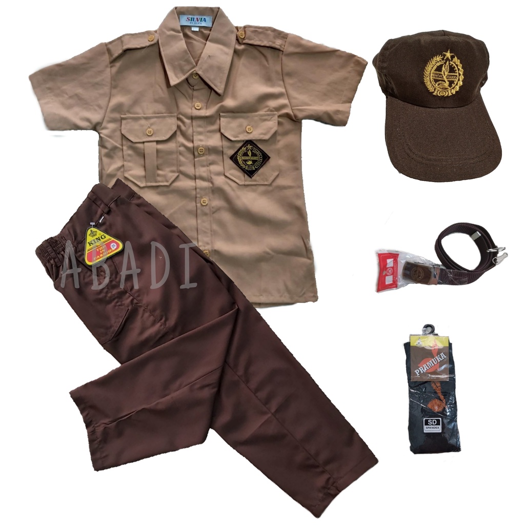 setelan seragam pramuka pendek panjang laki SD kelas 1-6 komplit