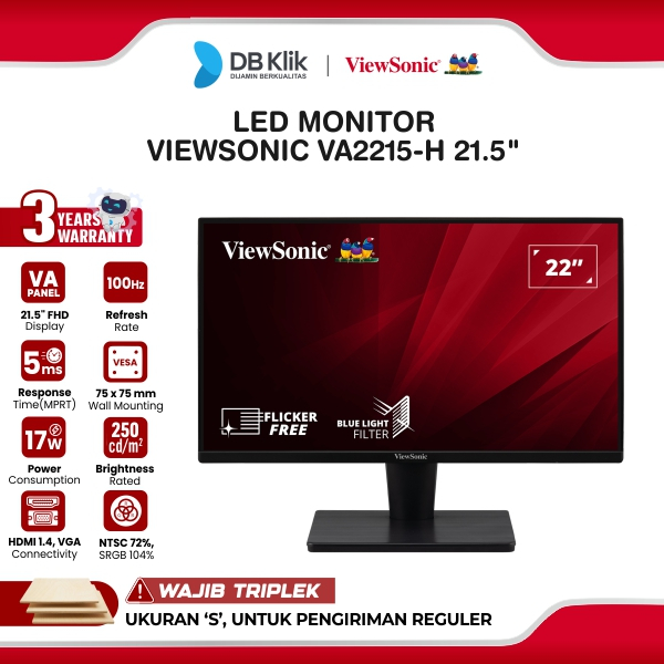 VIEWSONIC LED Monitor VA2215-H 22" VA FHD 100Hz 1ms AMD FreeSync HDMI VGA