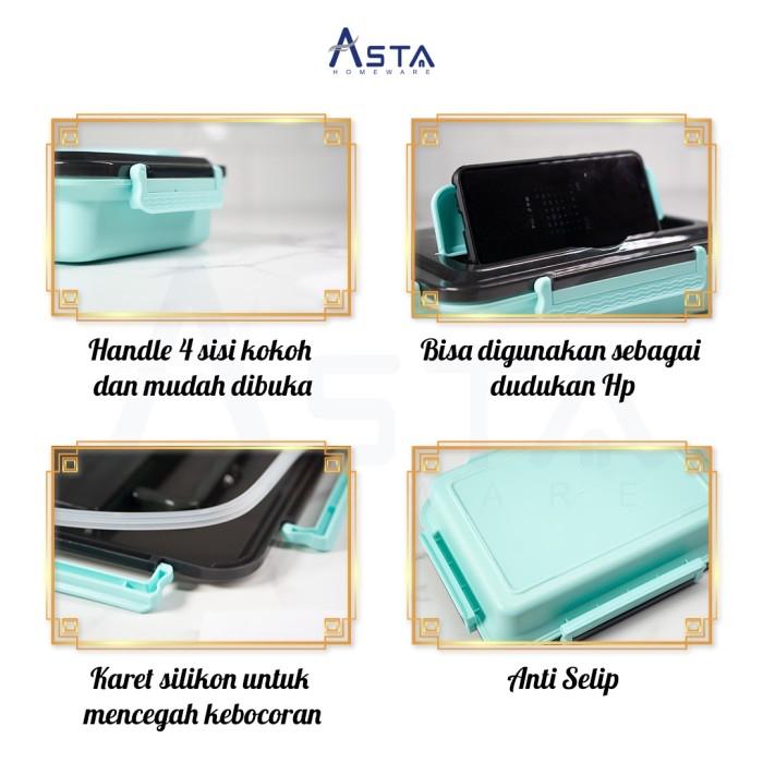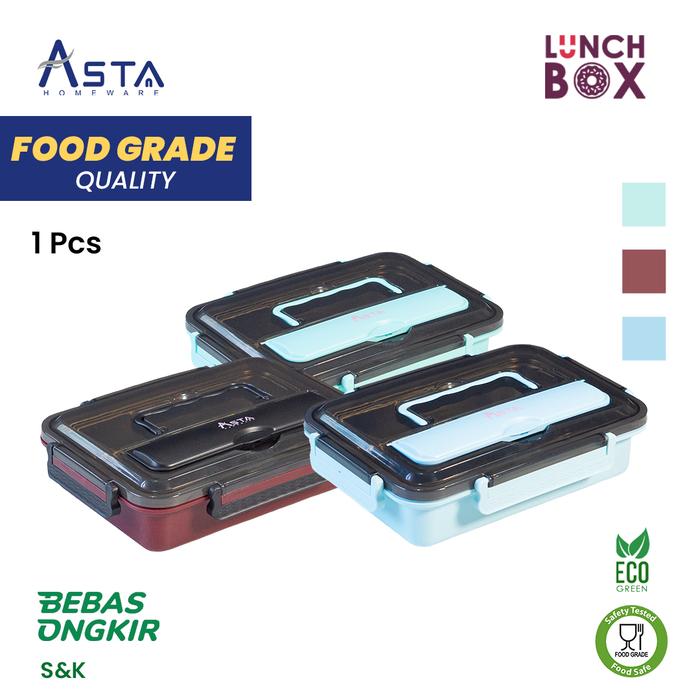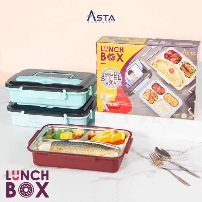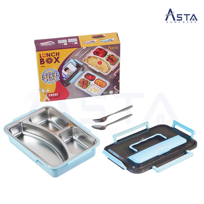 Tempat Makan Siang Lunch Box Stainless Steel Free Sendok & Garpu - 4 Sekat, Biru Muda