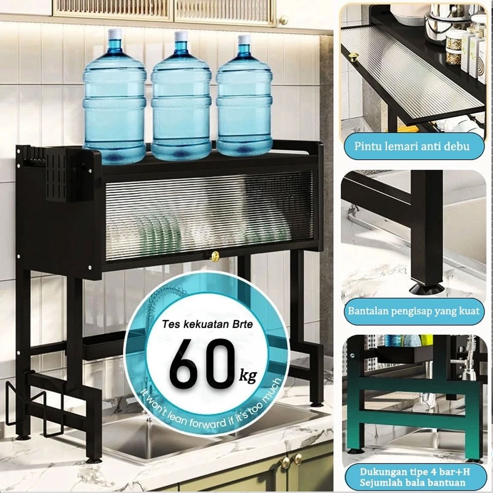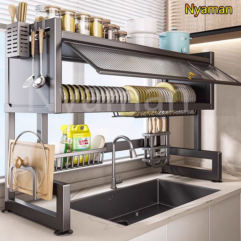 Nyaman Rak Piring Tertutup Rak Piring Wastafel With Cover Stainless Steel Rak Dapur Rak Piring Gantung Cuci Piring Wastafel
