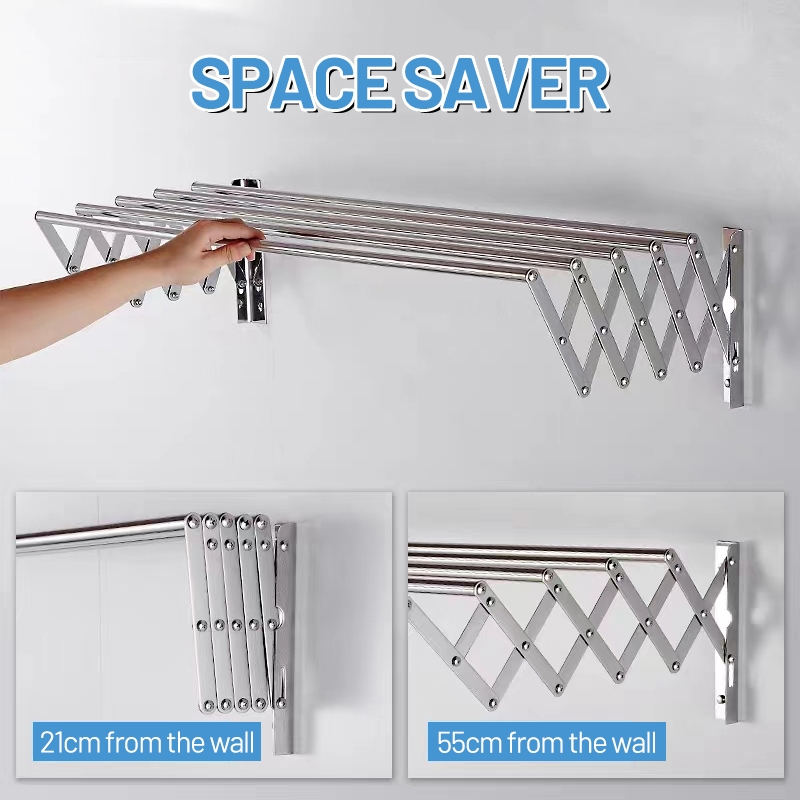 SUS 304 Jemuran Lipat Dinding Gantungan Teleskopik Jemuran Pakaian Dinding Jemuran Baju Pakaian Dinding Stainless Steel