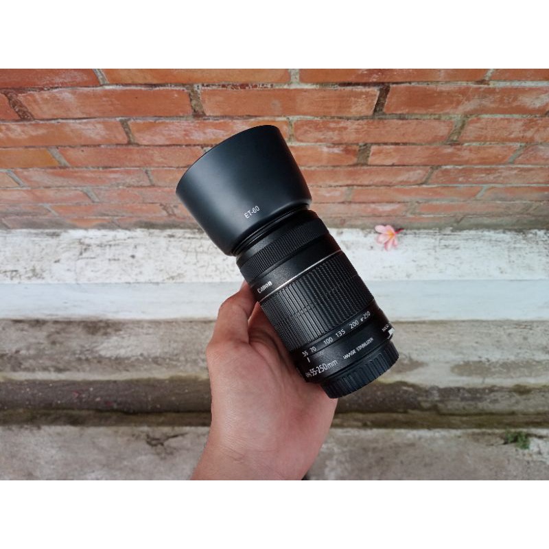 LENSA TELE CANON 55-250MM IS MULUS LIKENEW BANYAK BONUSNYA