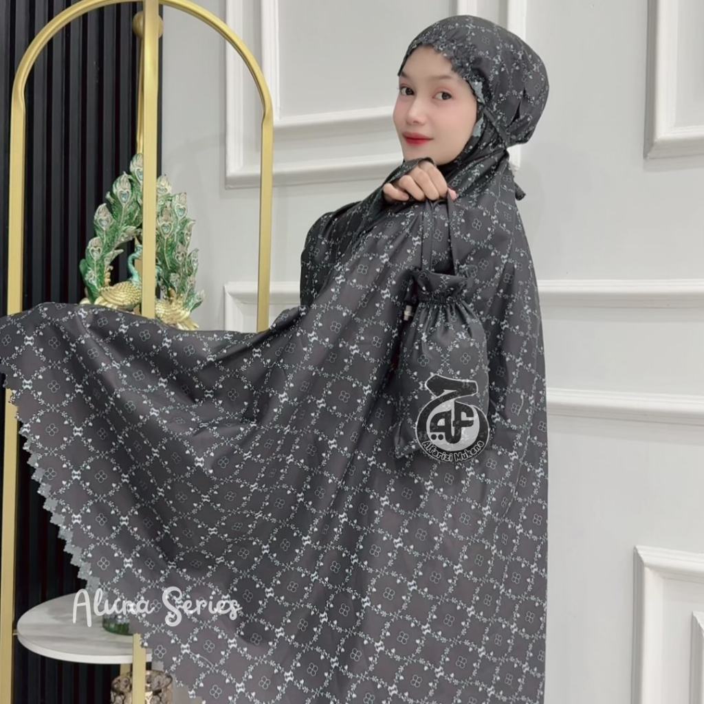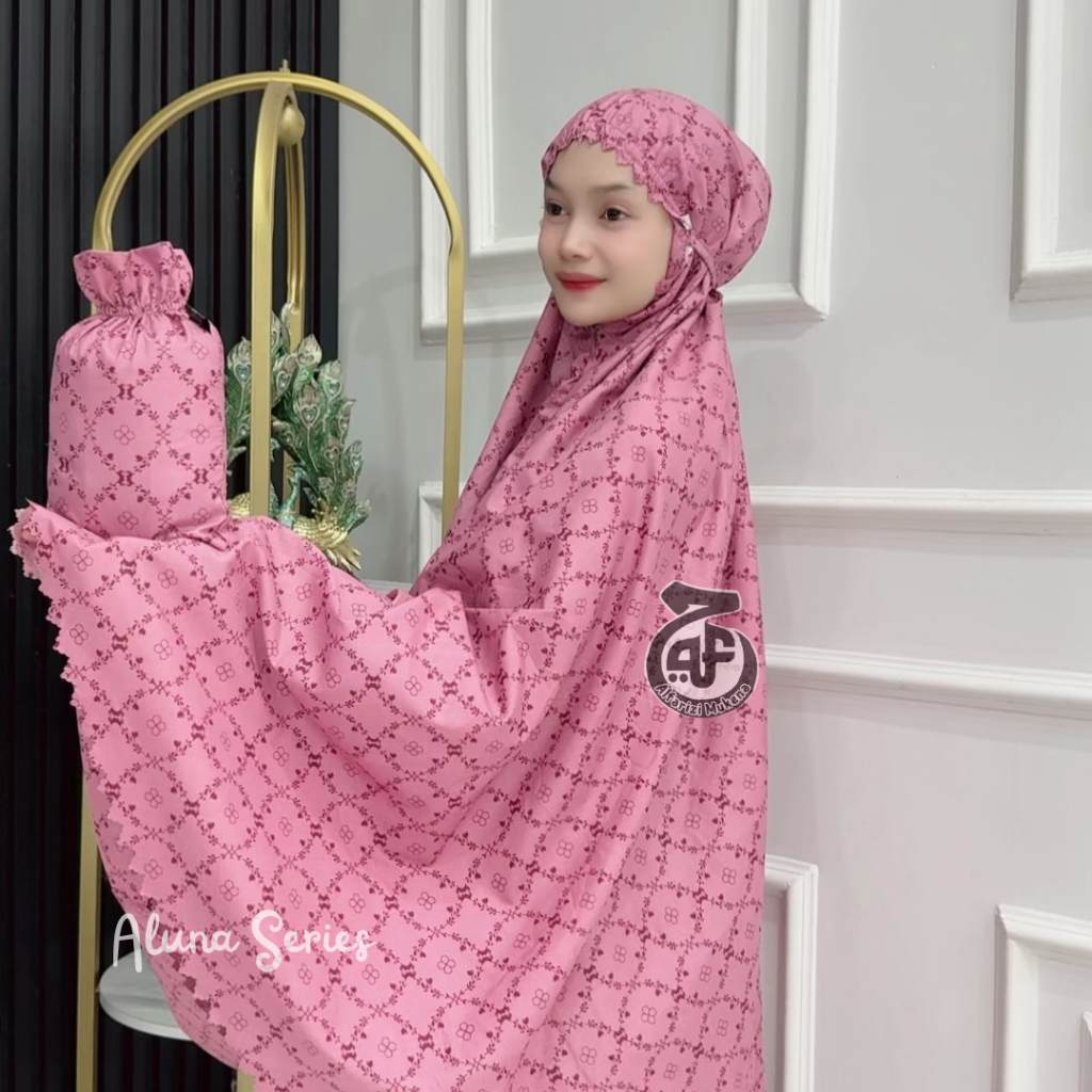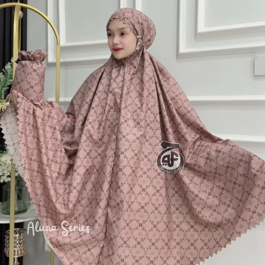 Mukena Dewasa Travel Terbaru Motif Alluna Series Dahi Kerut 2 in 1 Resleting dagu Katuin Premium