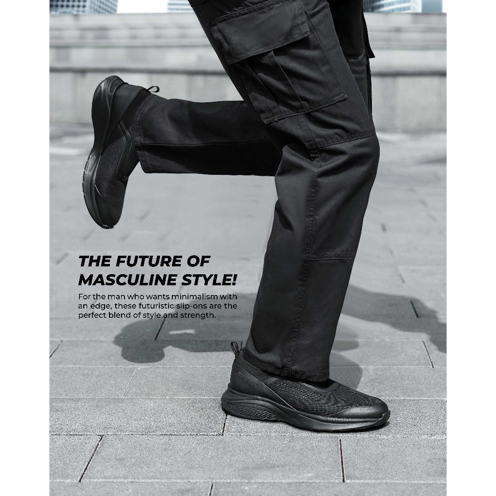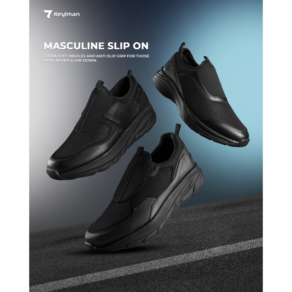 REYL MAN IRON Full Black Sepatu SLIP ON Sneakers Hitam Pria
