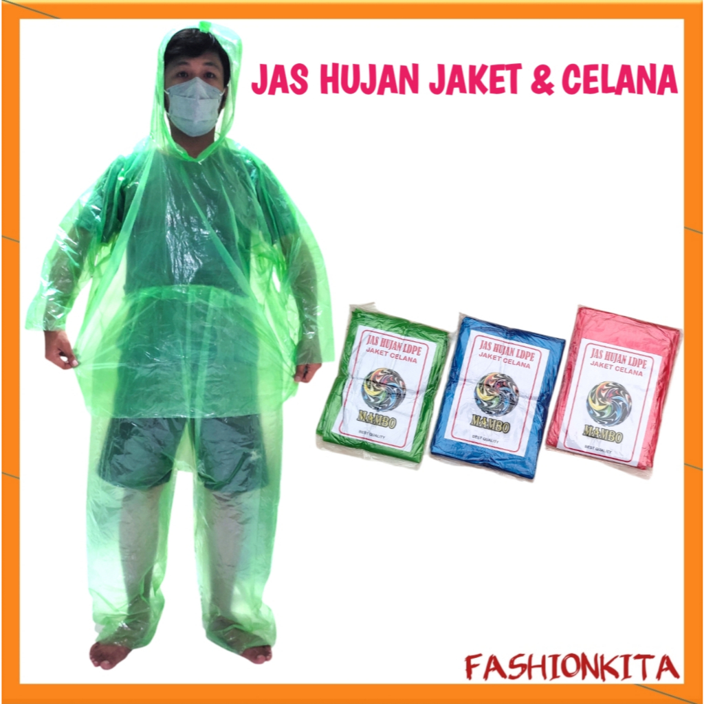 Jas Hujan Poncho Jas Hujan LDPE Jaket Celana Satu Setel Jas Hujan Plastik