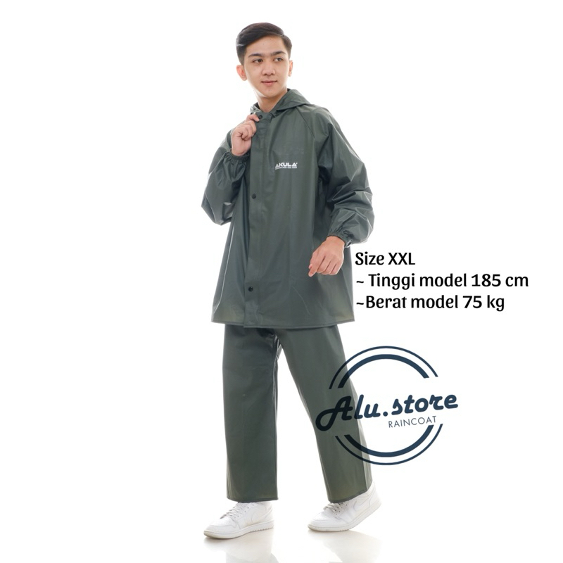 AKULA Jas Hujan Raincoat Pria Wanita Dewasa Terbaik Bahan PVC Anti Rembes Mocca