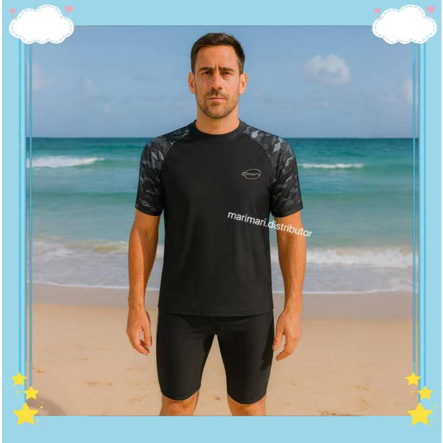 Baju renang murah antiuv satu set pakaian celana lengan pendek dewasa cowok pria 91024 91025 91026