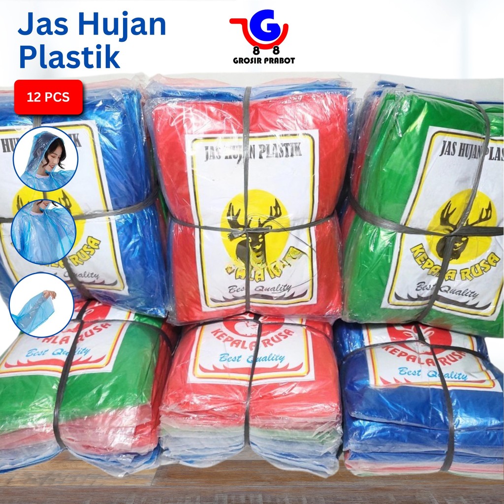 12PCS Jas Hujan Plastik Setelan Ponco LDPE HDPE Pelindung Diri Baju Celana Raincoat Travel Murah