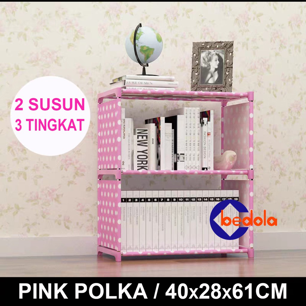 Rak serbaguna 3 tingkat 2 susun rak buku portable lemari multi fungsi