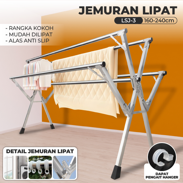 Jemuran Baju Lipat 5 Tiang Jemuran Pakaian Anti Karat Kuat Jemuran Baju Portable Tanpa Instalasi