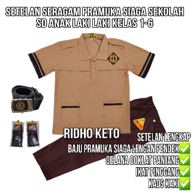 setelan pramuka siaga sekolah SD anak laki laki lengan pendek celana panjang pakaian seragam pramuka sekolah SD