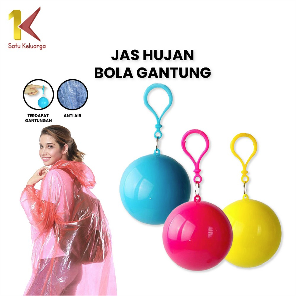 Satu Keluarga Jas Hujan Bola Plastik Gantung Warna Warni Anti Air C853 Raincoat Travel PortableJas hujan Konser dengan Gantungan Bola Kunci
