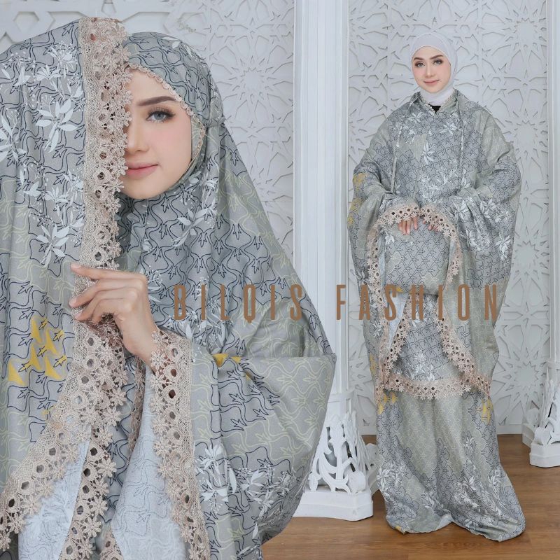 Mukena Dewasa RAISHA 2in1 Resleting Bahan Katun Motip Printing
