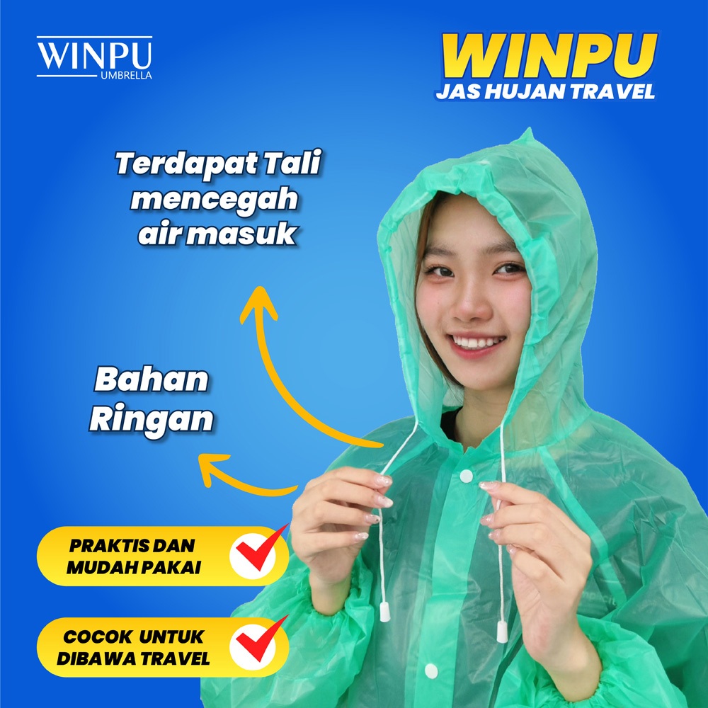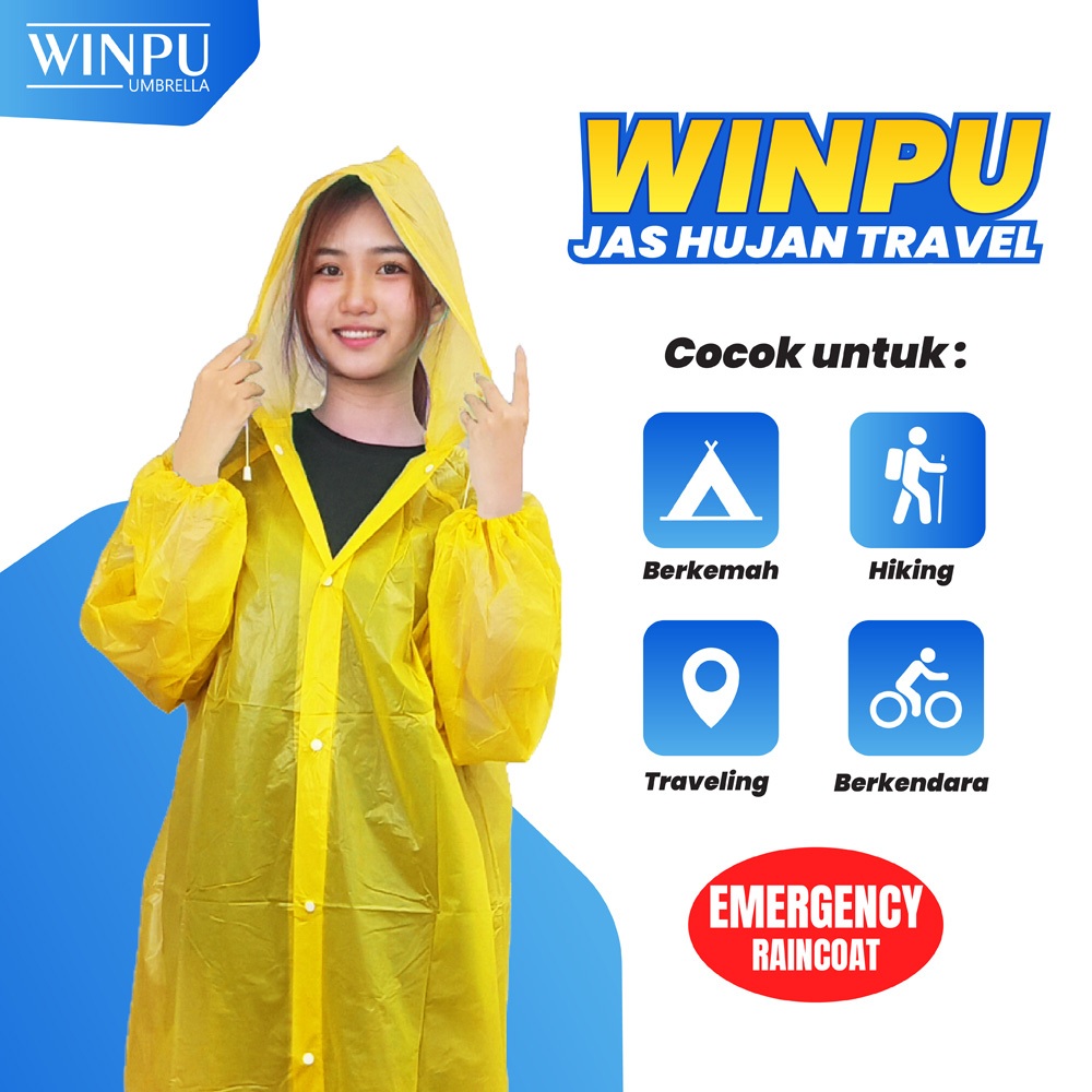 WINPU Jas Hujan Travel Emergency Murah bahan Tebal Dengan Kancing Bahan PVC