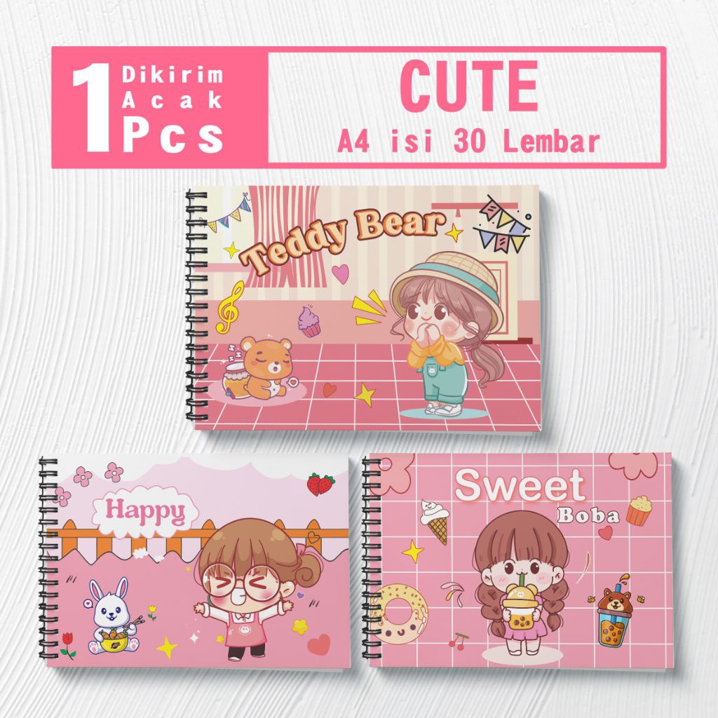 Buku gambar Anak Sketchbook A4 Drawing Book Cute Jilid spiral Tebal 300gsm isi 30 lembar