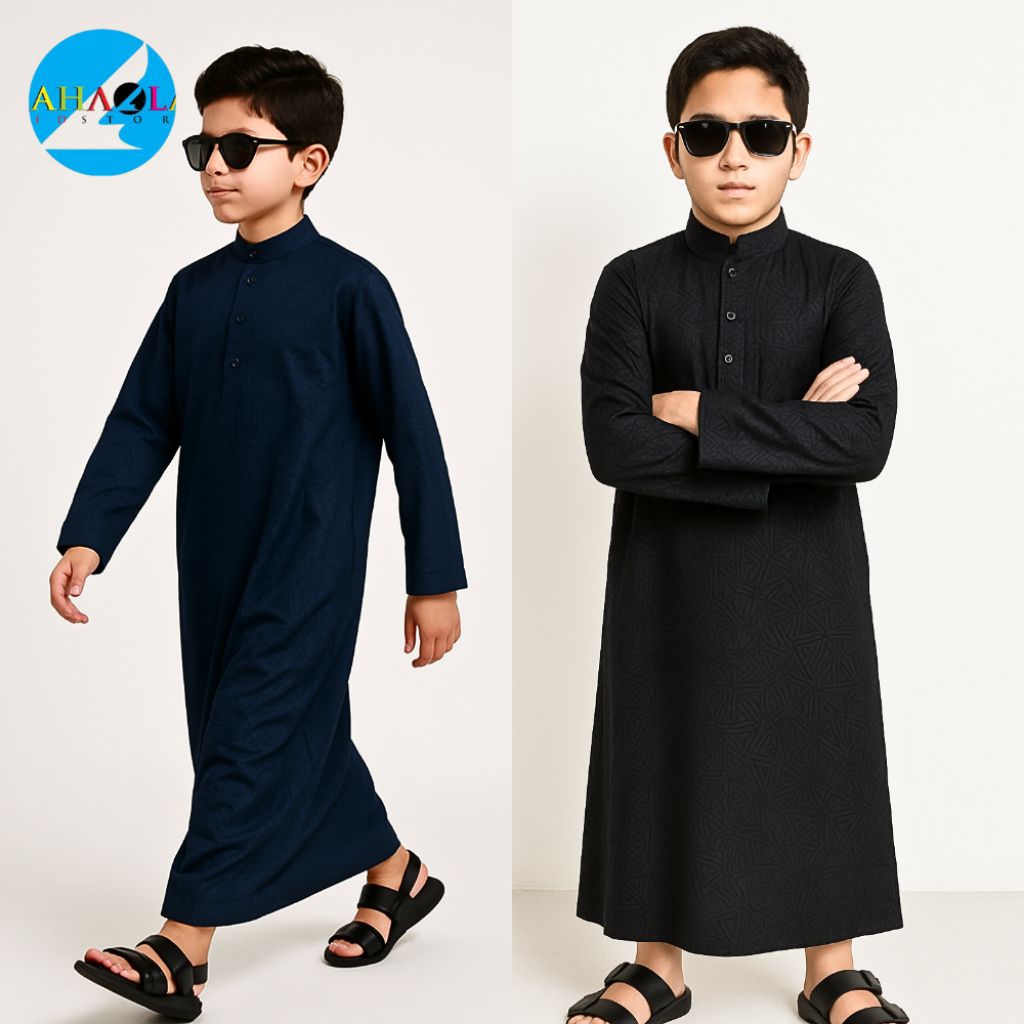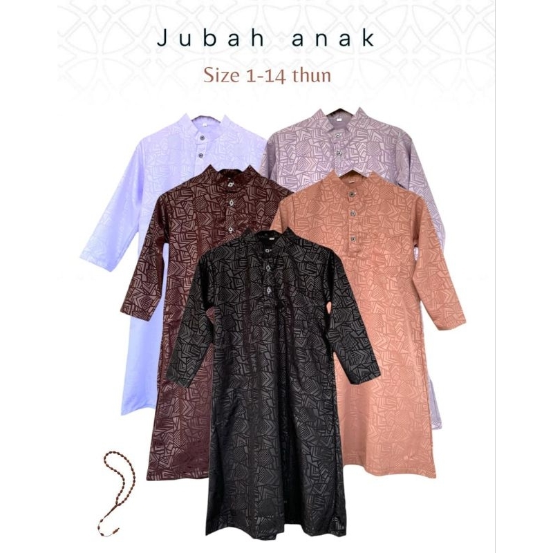 ELRUMI baju muslim gamis anak laki laki jubah emboss usia 1-14 tahun katun micro mahogany