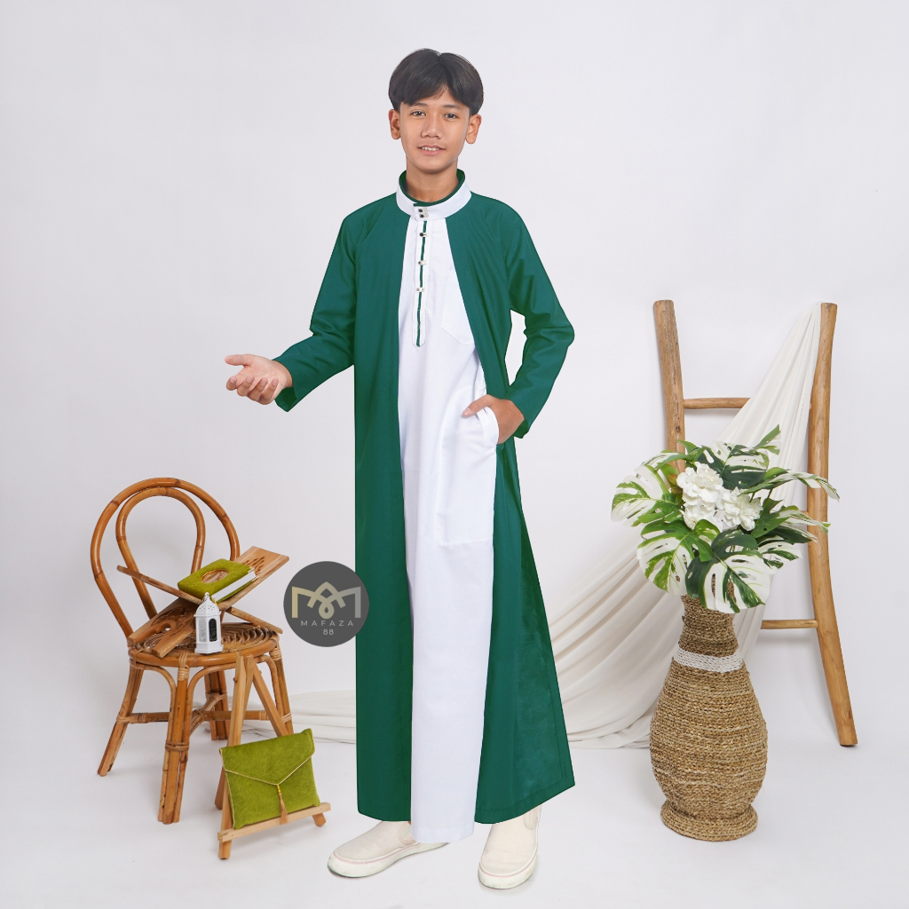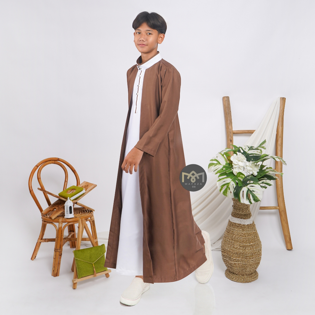 Jubah Gamis Anak Laki 2 Layer 2 in 1 TOYOBO PREMIUM ADEM Usia 8 9 10 11 12 13 14 15 16 Tahun Kancing Snap Impot el