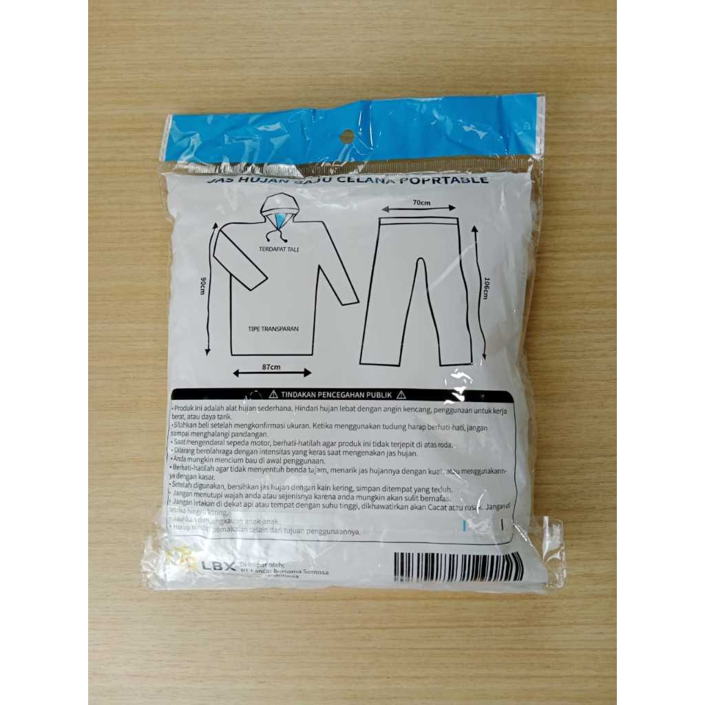 Setelan Jas Hujan Jaket Celana LBX Plastik Raincoat Transparan Bening