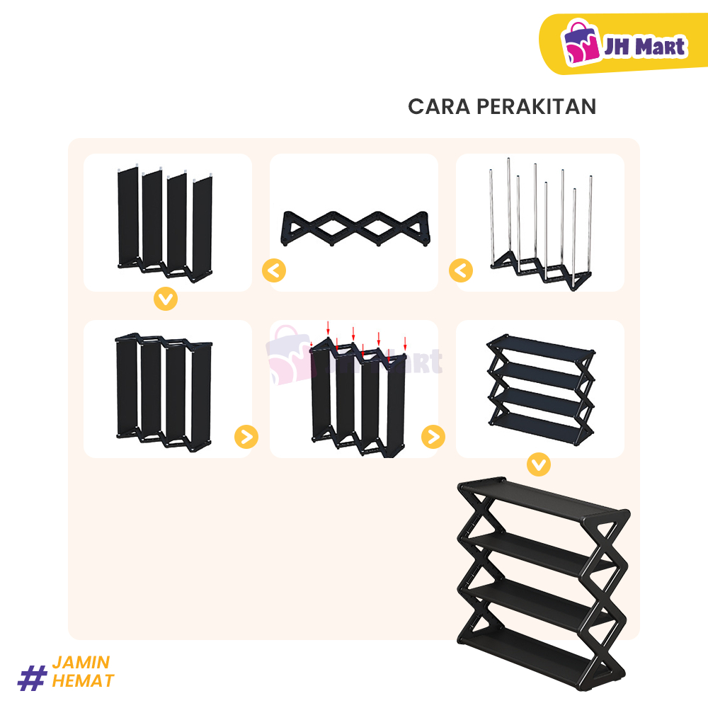 JHM - Rak Sepatu 4 Susun Serbaguna Sandal Portable Model Zig Zag Hemat Tempat
