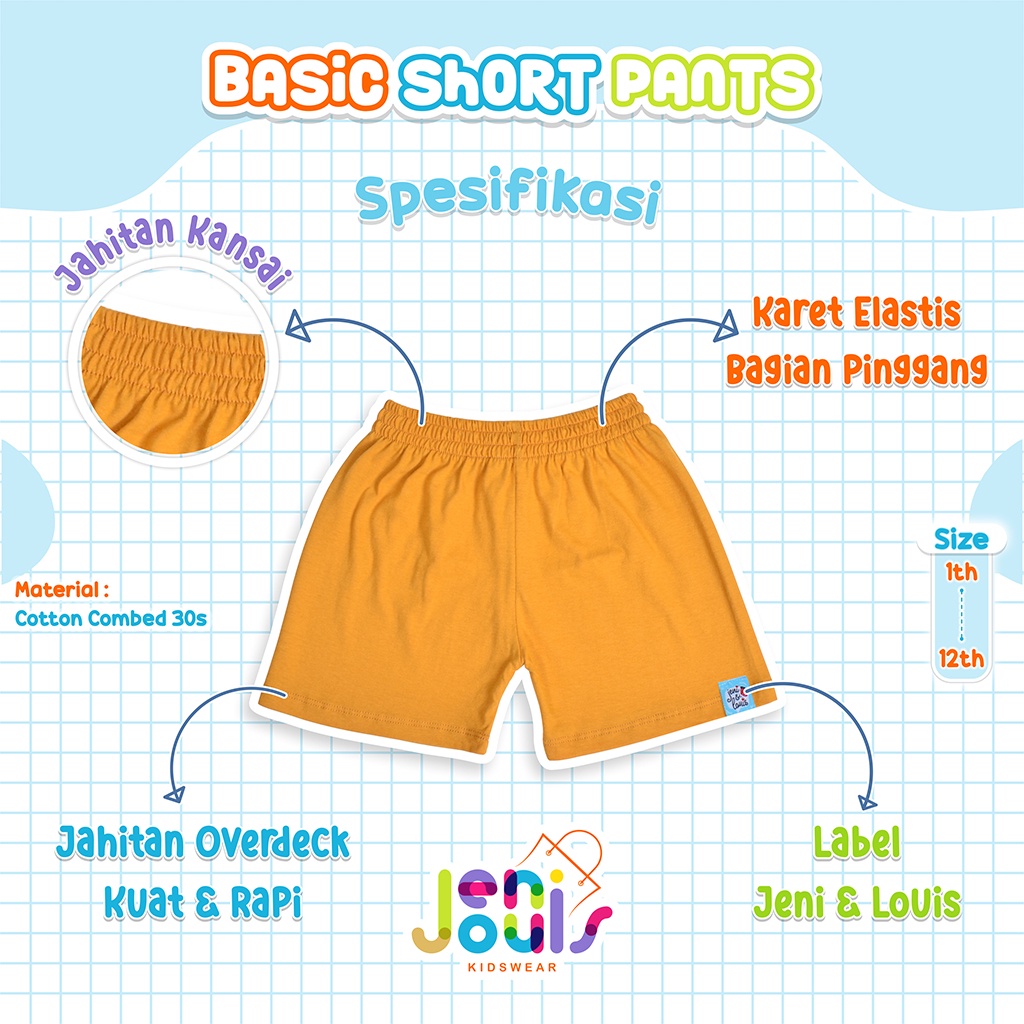 Celana Pendek Anak Laki Laki Perempuan Polos Unisex Usia 1-12 Tahun Original Jeni & Louis