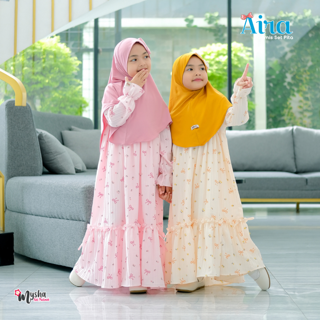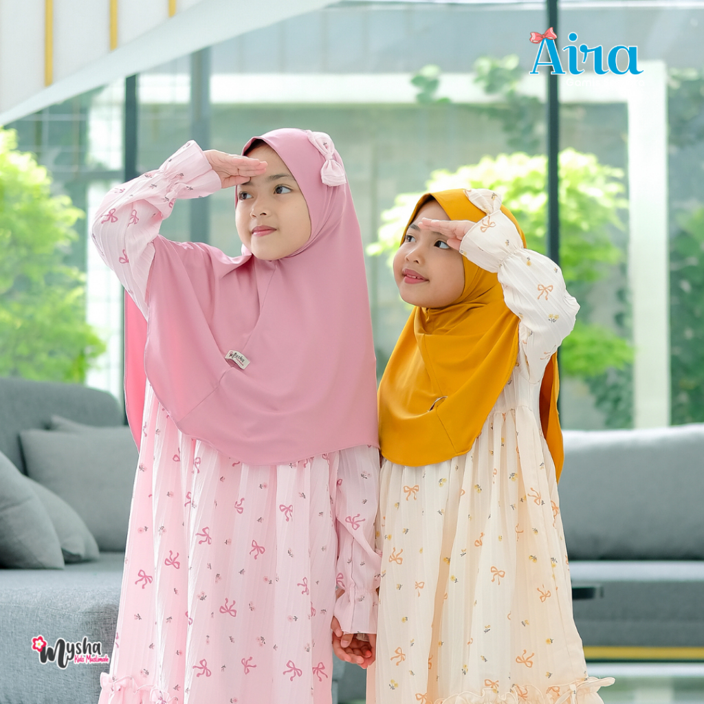 Mysha Kids Muslimah - AIRA Series Gamis Anak Perempuan JIlbab Pita Dress Muslim Anak set Hijab 2-11