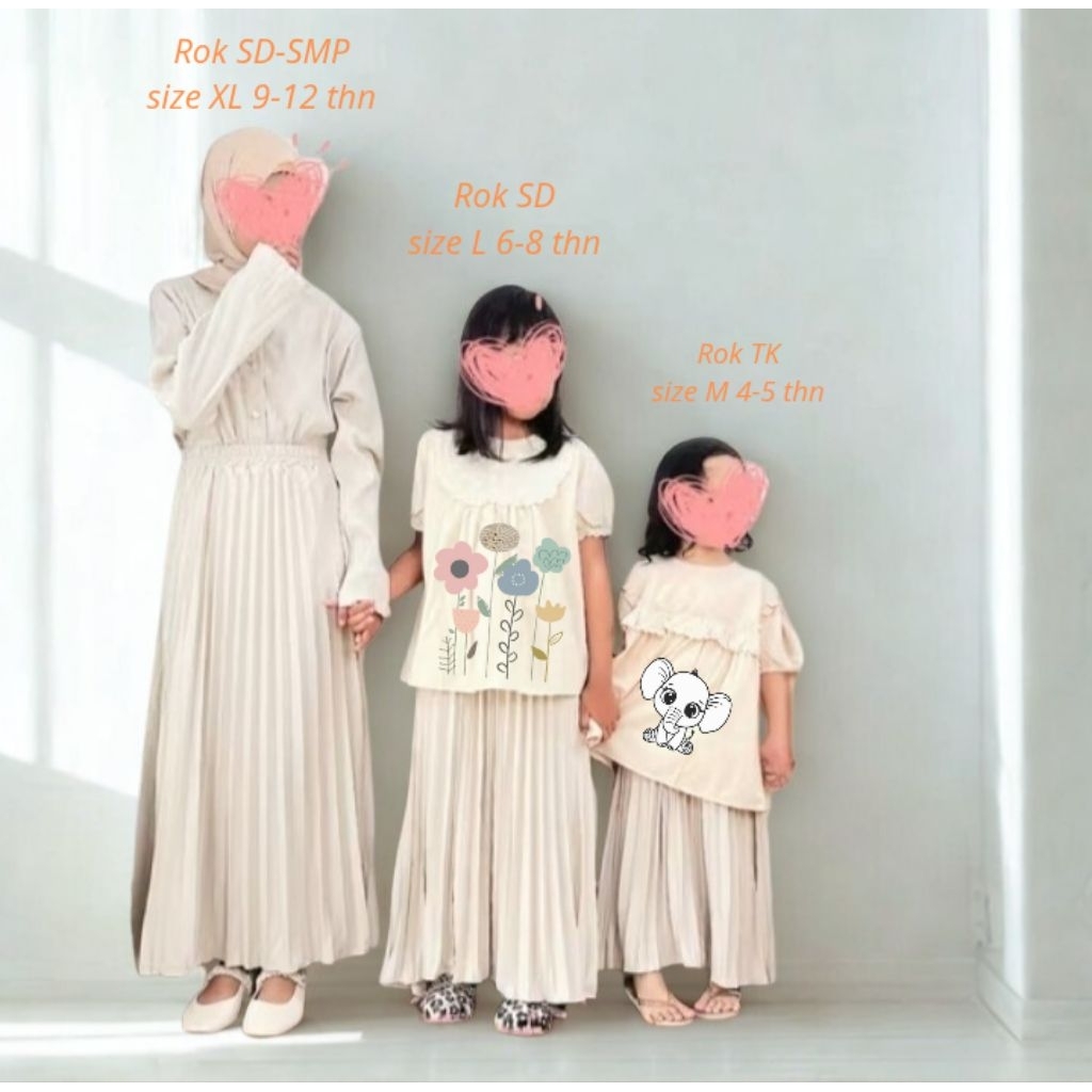 Rok Plisket Anak Usia 4-5-6-7-8-9-10-11-12 Tahun bahan haiget super