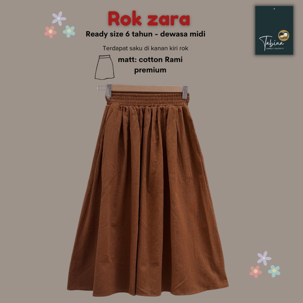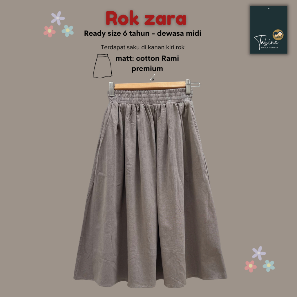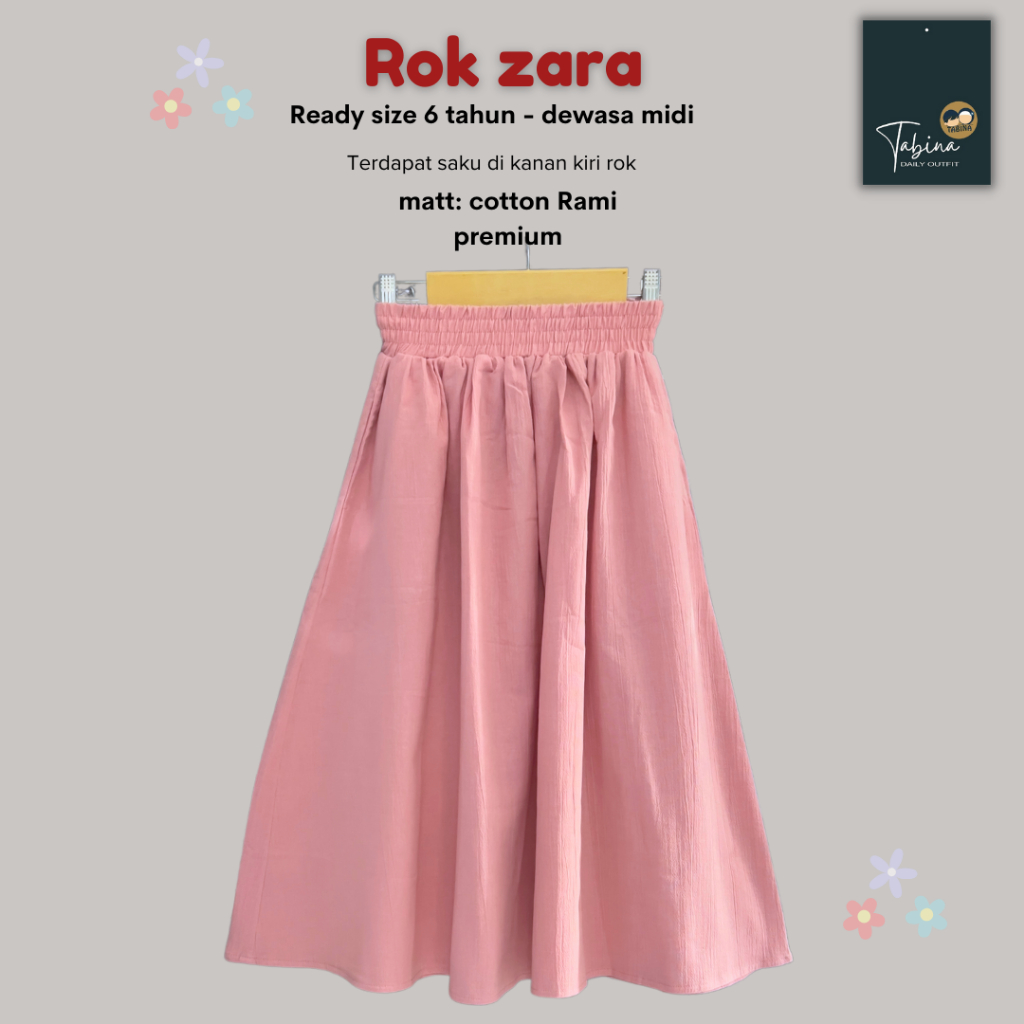 Tabina Rok Anak Perempuan Hingga Dewasa MIDI seri Zaraa Bahan Katun Rami usia 5 tahun hingga Dewasa