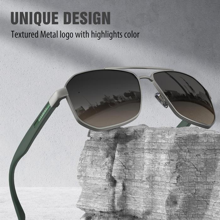 Luenx Kacamata Aviator Sunglasses For Men Square Polarized Polygon Lens - Uv 400 Protection With Accessories 61Mm Drivin